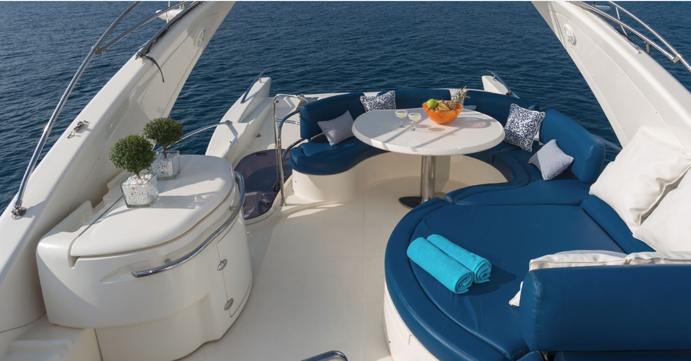 Almaz is a 21,6 meter crewed motor yacht built by Azimut, which offers a modern interior design and outstanding performance. She can accommodate up to 8 guests in 4 en-suite staterooms.She features a modern interior décor of warm woods and fine leather soft furnishings. The salon boasts a generous lounge aft, with ample seating and full entertainment systems. Forward, the formal dining area is raised and seats 8 guests with ease. Surrounding windows allow for ample natural light, while showcasing fabulous views. Almaz offers also plenty of exterior deck space to relax. The salon leads out onto an adjacent aft deck, with an alfresco dining option, seating and shade. Above, the sun deck is perfect for any occasion, featuring an alfresco dining option, wet bar, sun pad and fold down Bimini cover. Furthemore, this luxury motor yacht has been newly refitted in 2017 and offers ample exterior spaces that make cruising aboard pure joy.